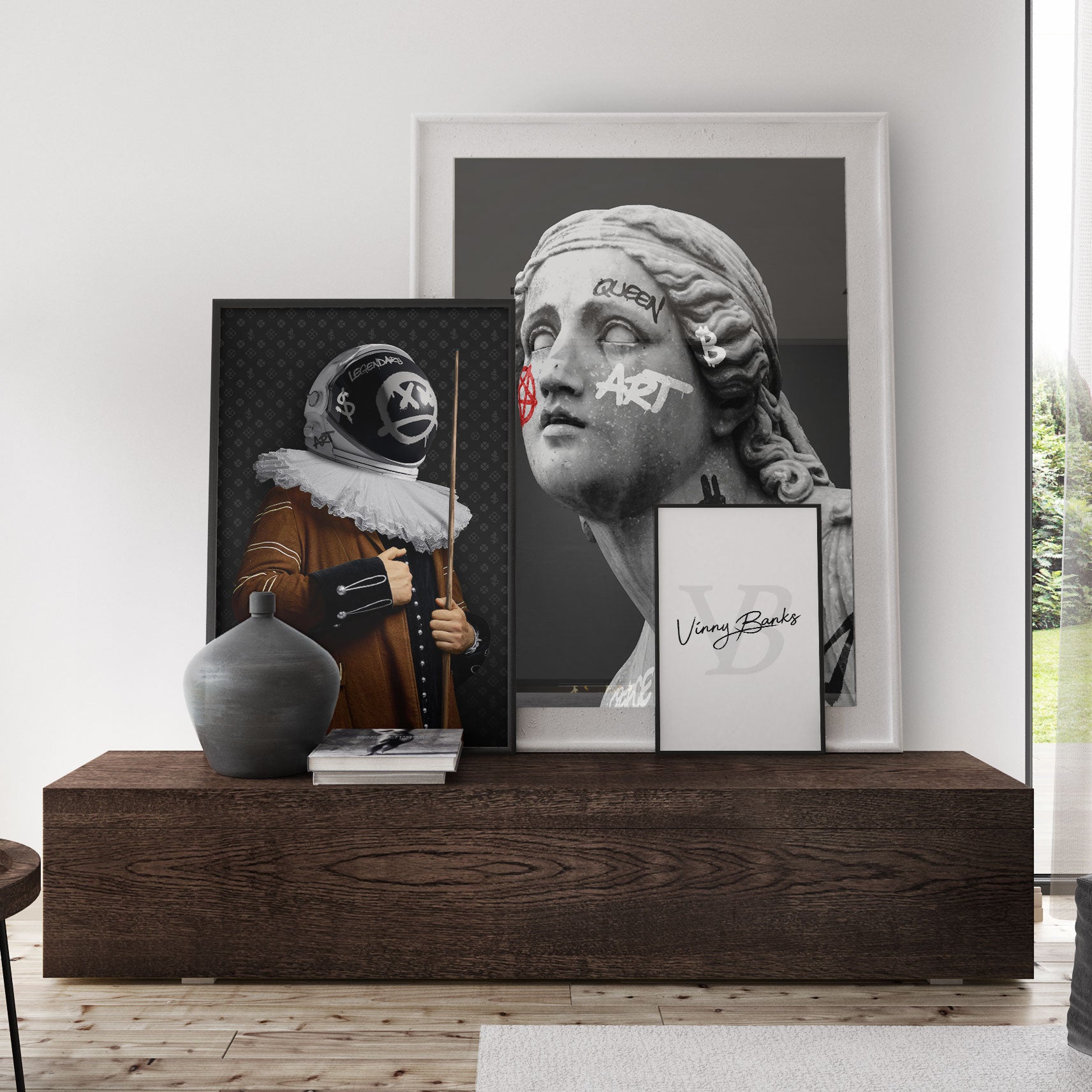 Original “Woman Sculpture V2” Artwork of Vinny Banks. Contemporary Altered Art Printed onto museum-quality archival paper. Inspired by hip-hop and street style culture with graffiti accents.